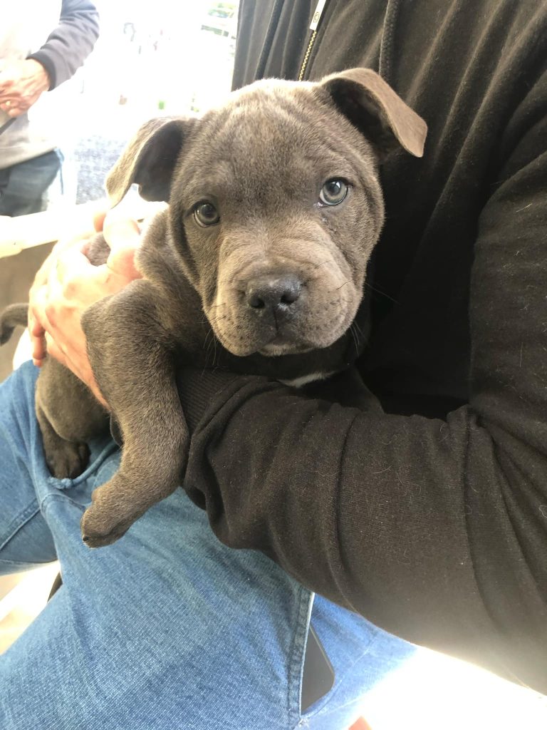Little puppy Cash getting picked up from Allbluestaff at 12 weeks old.